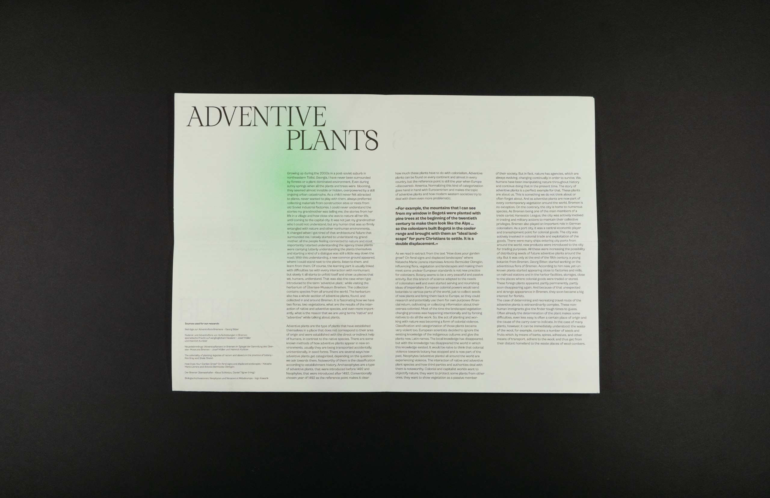 The Publication uncovers untold stories, exploring the profound impact of colonization on the botanical world, based on example of W/Garten.