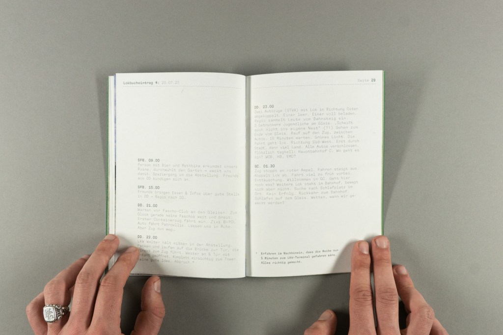 East Germany. Rain. Nettles. Freight trains. Mosquitoes. Waiting. Bridge over the border river. More rain. B—Pol—Heli. And still no ride. Half a liter of action. Rancid ruin. Car train to the province. Then finally the wind in my face. Intermodal. Once across the east. Wild boars and more rain.