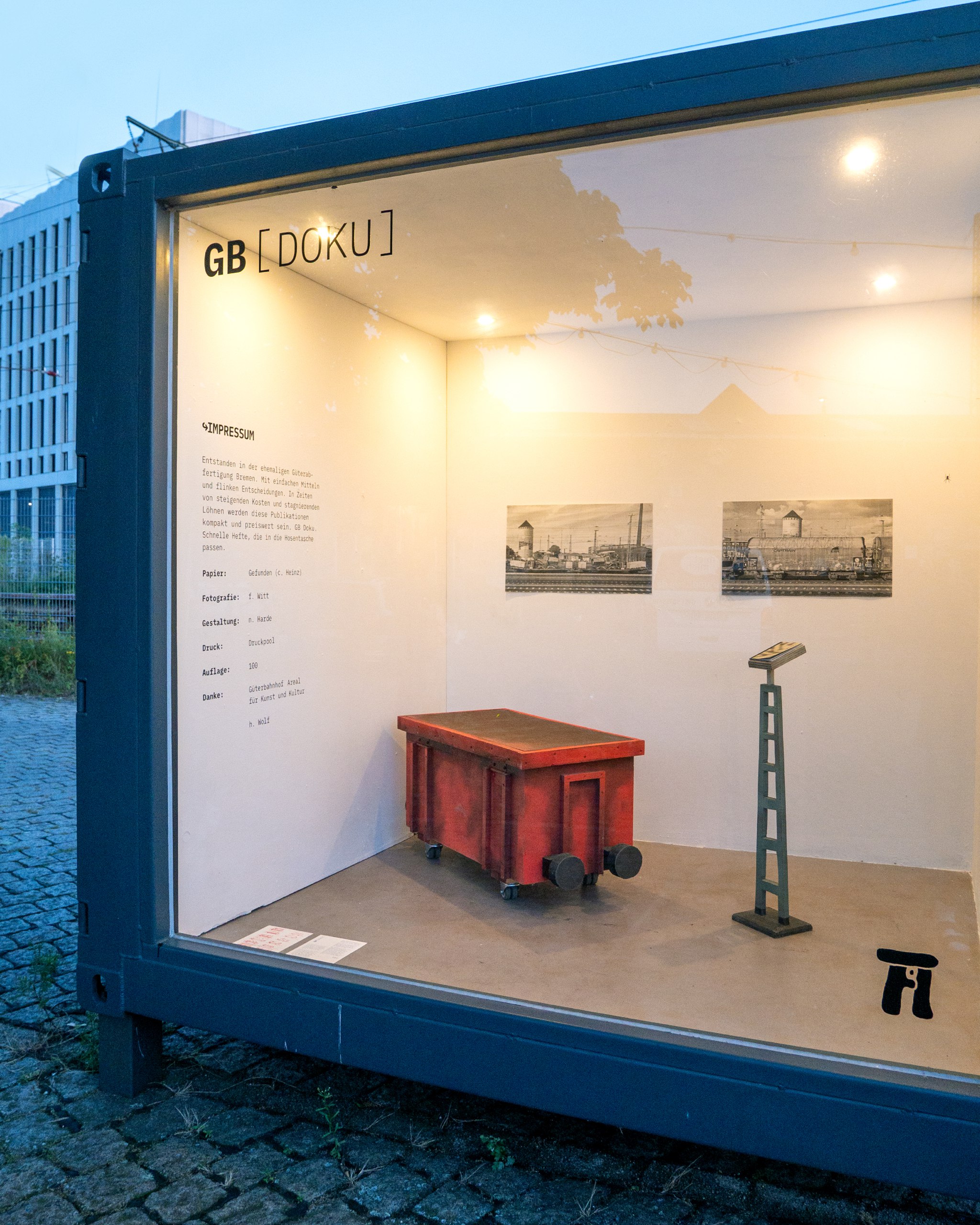 An association consists of many, all of whom need something. The larger the collective, the more important the networks that facilitate the transport of useful and necessary things become. Transport happens sometimes loudly, sometimes quietly, sometimes delicately, and sometimes forcefully. The music on the radio flies to us invisibly through the air, a courier hums and rings on the streets. Trains, however: trains are different. They share their tracks with no one, are loud and massive, elegant but uncompromising. They travel everywhere, yet where they could come close to people, they are hidden behind sound barriers and routed over bridges. Where they cross paths, gates often stand in the way. For their benefit, other routes are temporarily closed. When a train rushes by at the Oldenburg track of the Bremen freight yard, the area is cut off from the rest of the city. At these times, it is completely surrounded by tracks. An island is created. More than a hundred times every day. The former Bremen freight handling facility has long ceased to be a transshipment point for cargo. Train operations were discontinued in 1997, yet the rhythm of the area is still determined by the sound of the trains. Being in this space invites reflection. Transport and infrastructure, necessities and needs, arriving and departing. The trains couldn’t care less; they don’t stop here; they are just passing through. They are happy to be observed, especially from up close. But caution is advised. Hearing their locomotive call means: Don’t come too close; I am bigger than you. Idea and concept by Nick Harde and Florian Witt. Sponsored by the Senator for Culture Bremen.