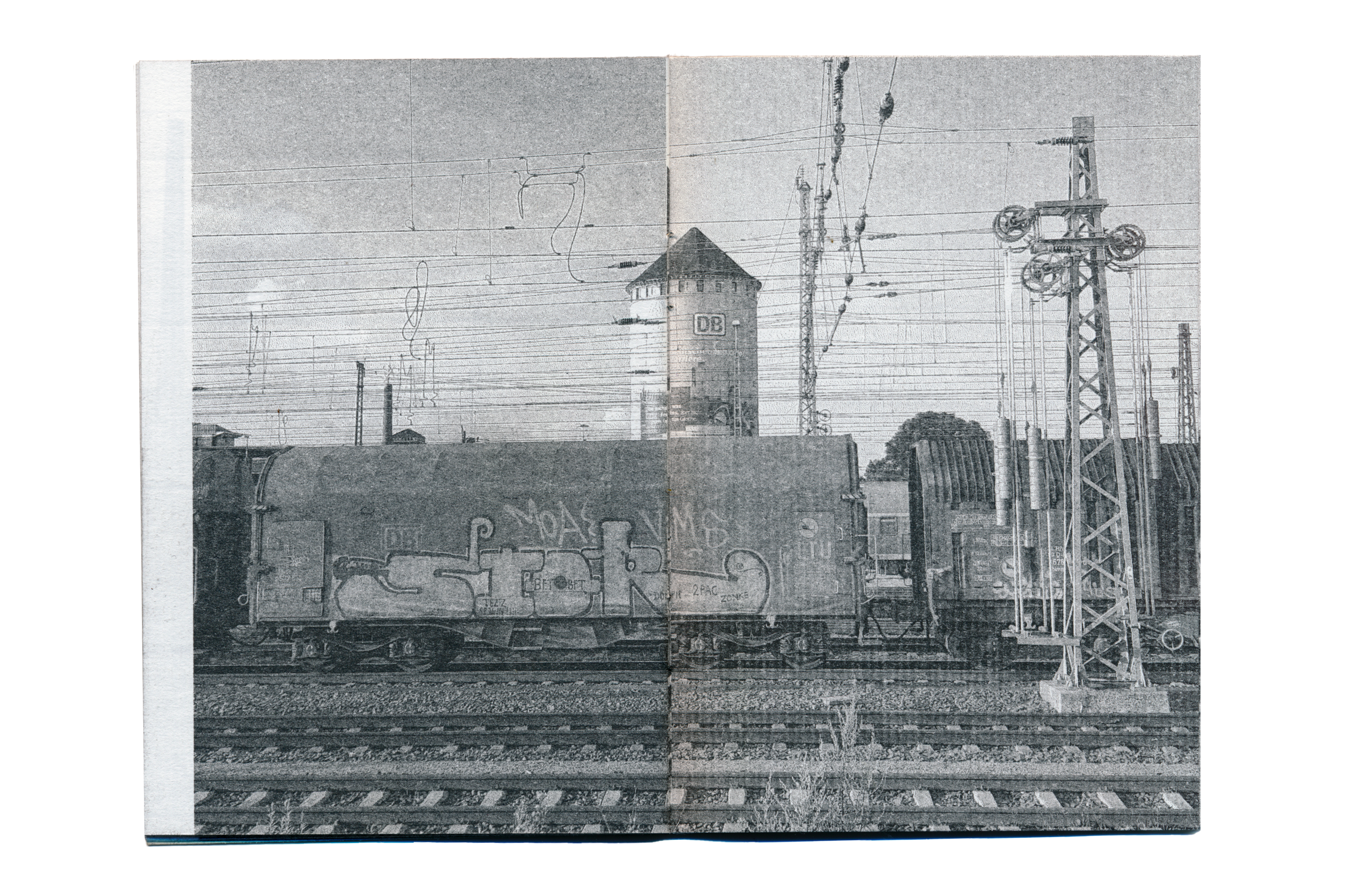Daily work in the studio, surrounded by trains and their movements. Photographic documentation of this situation has been created since 2019. This is followed by notebooks with the aim of organizing the resulting images. Well over 10,000 photos have been taken since 2019 – when a train is documented, every single carriage is photographed. I now know many of them. Either the fleet numbers are limited, or they have noticed that I am watching them. Perhaps they enjoy the limelight. Editing this huge archive is the aim of GB [DOKU] and the reason for the collaboration with the @auszuege collective. In this first edition, wagons were selected on which paintings in black and white can be seen. Similar to the development of a complex work, it is often simple contrasts that serve as a starting point. The booklets will be small and inexpensive. The black and white edition is to be seen as a starting signal.